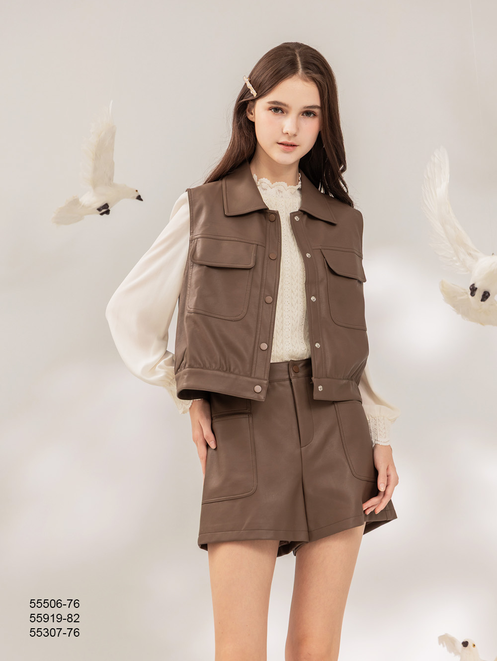 率性皮背心-咖啡色