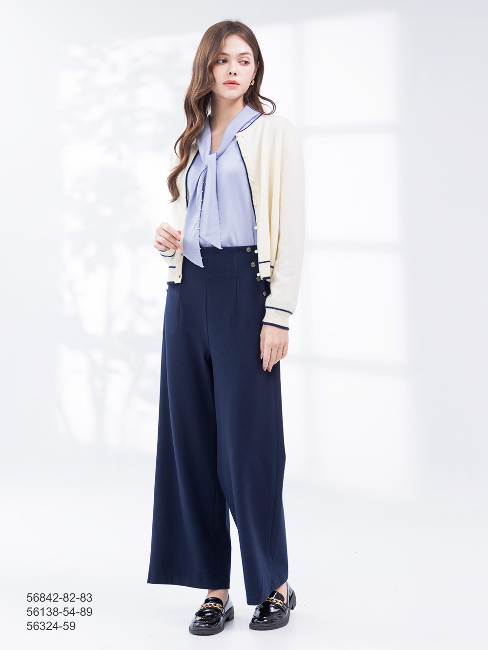 高腰釦飾寬褲-夜藍色