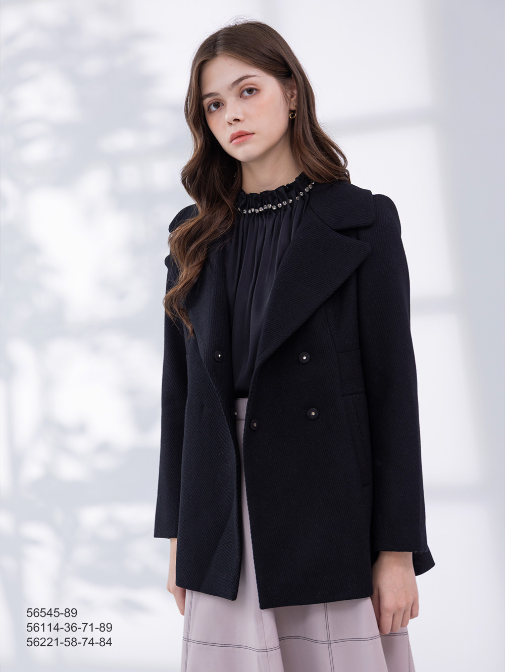 都會翻領羊混紡外套-黑色