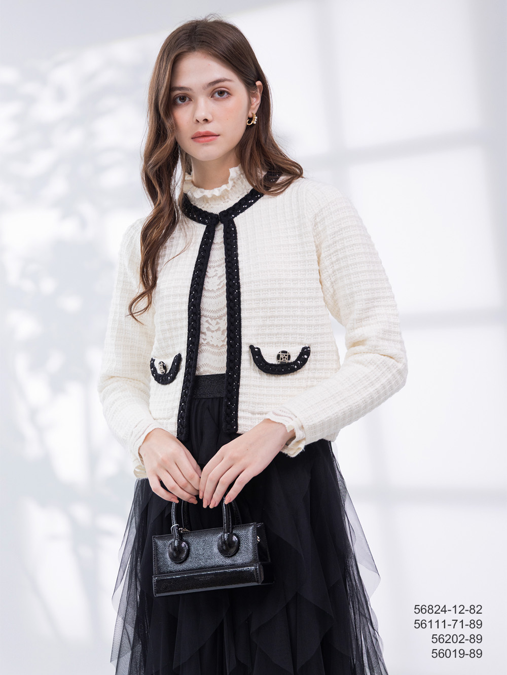 小香風門襟配色針織外套-淺米白