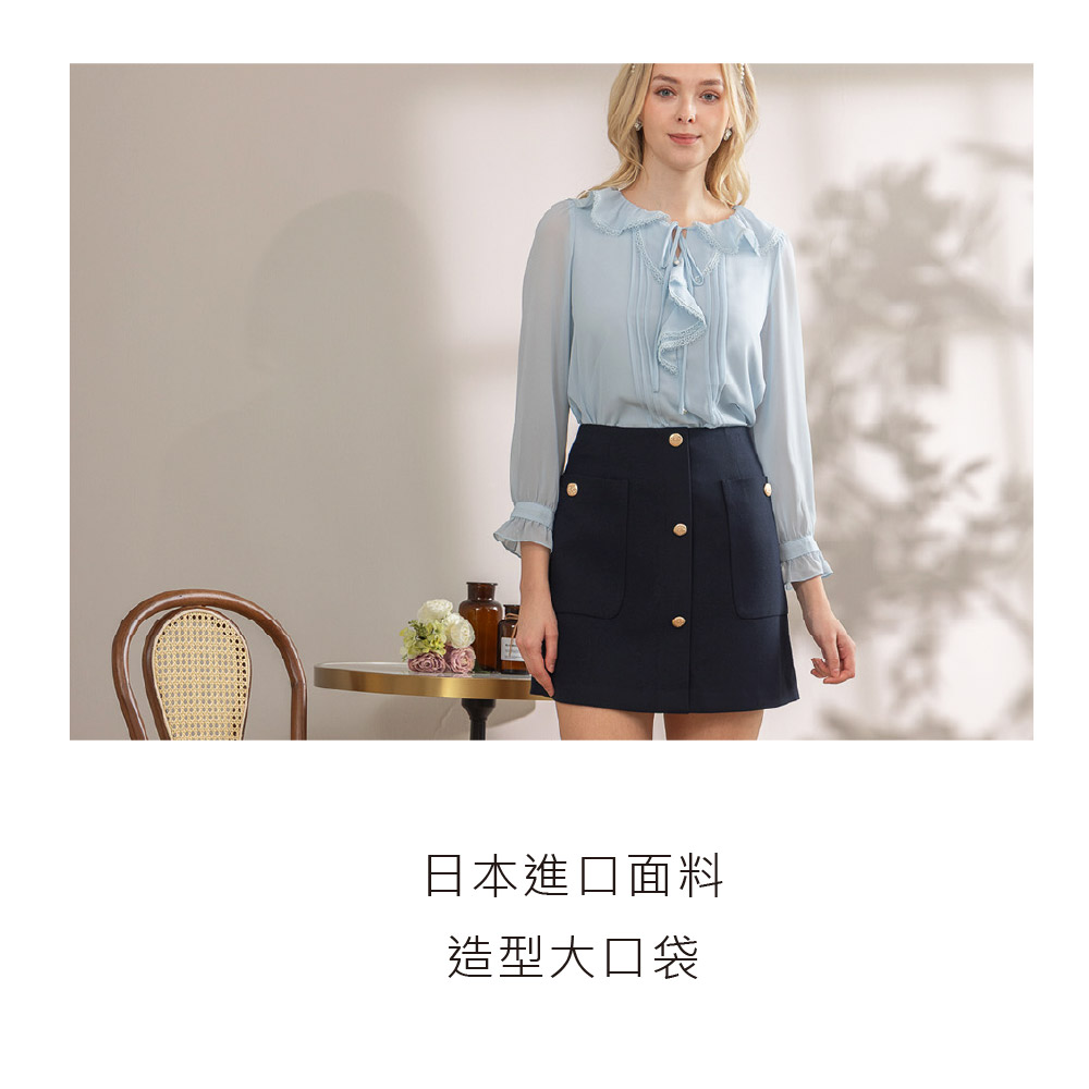 甜美造性口袋短裙-夜藍色