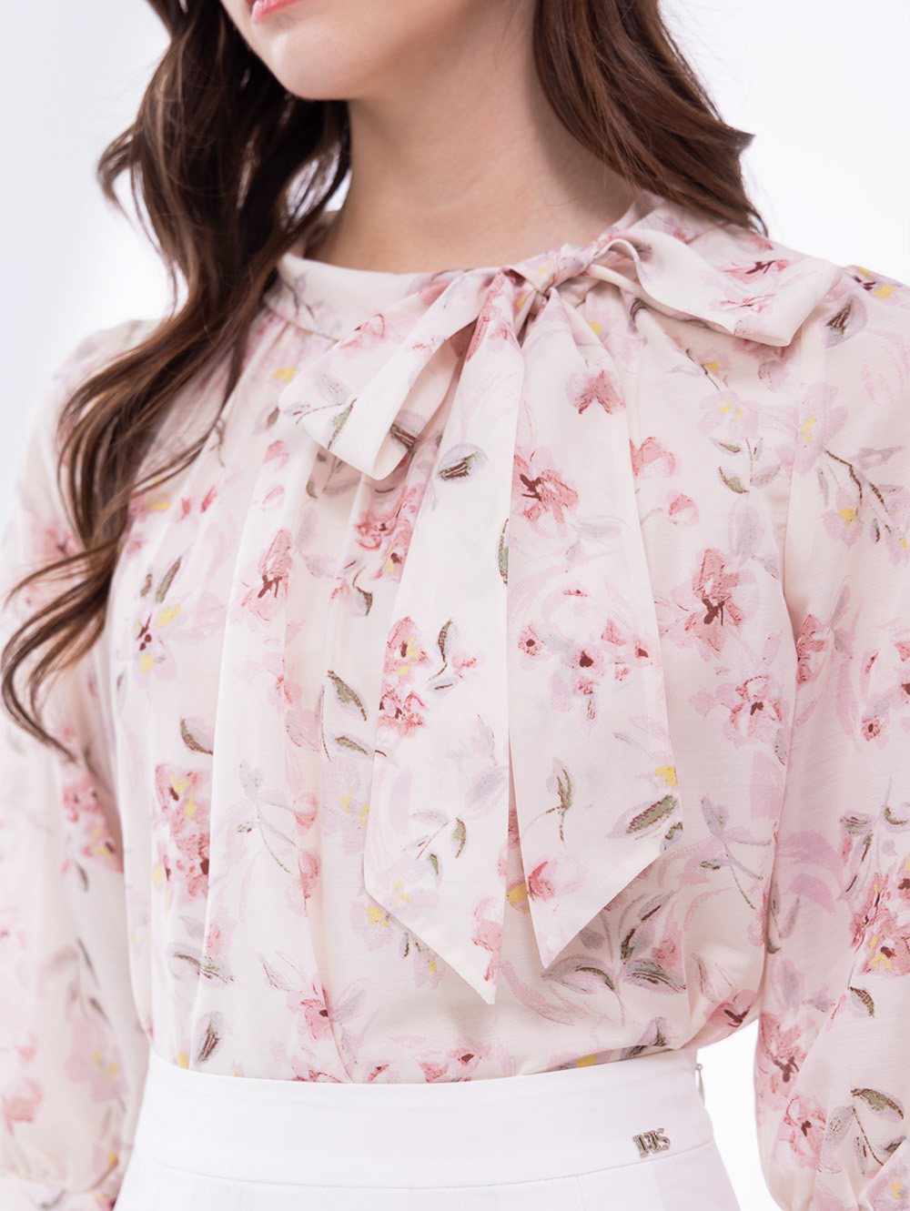 古典花園綁帶領上衣-粉色