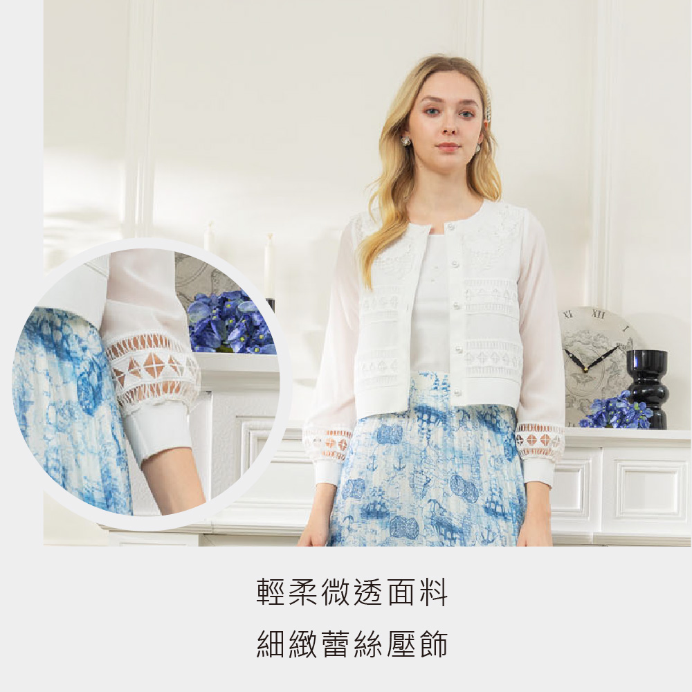 雅致蕾絲壓飾外套-淺米白