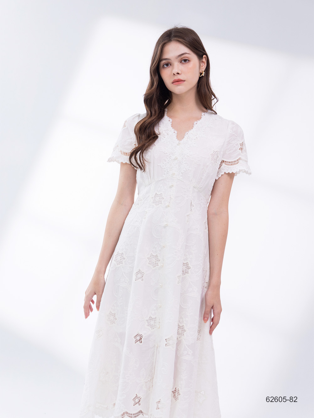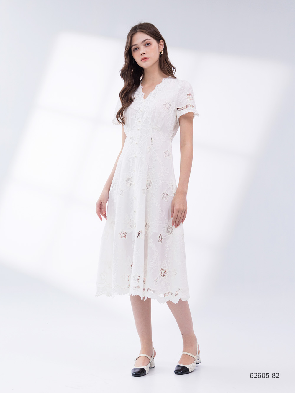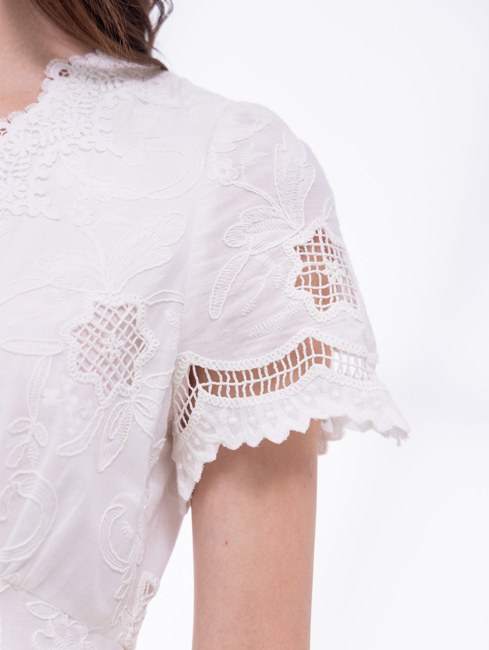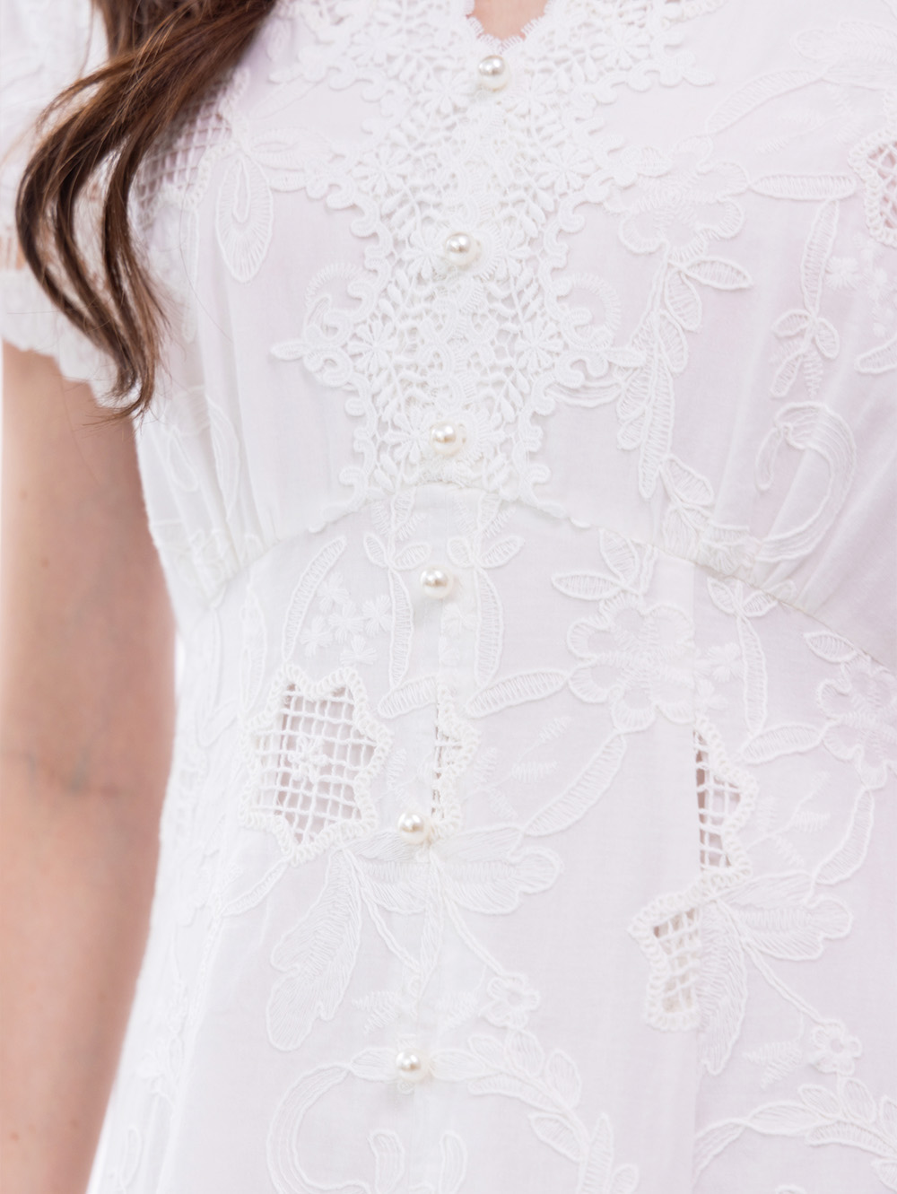 刺繡棉蕾絲洋裝-淺米白